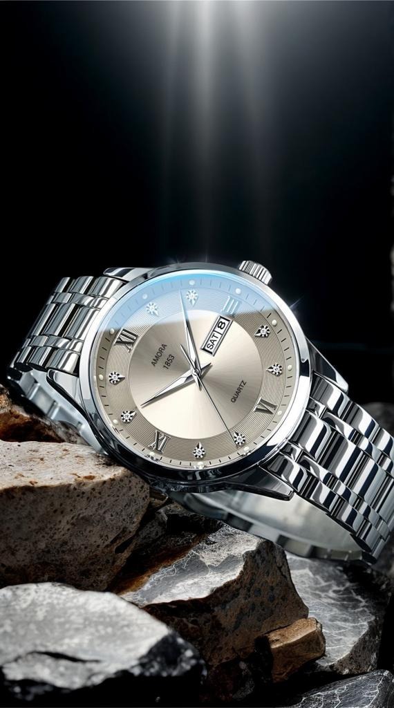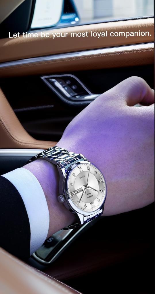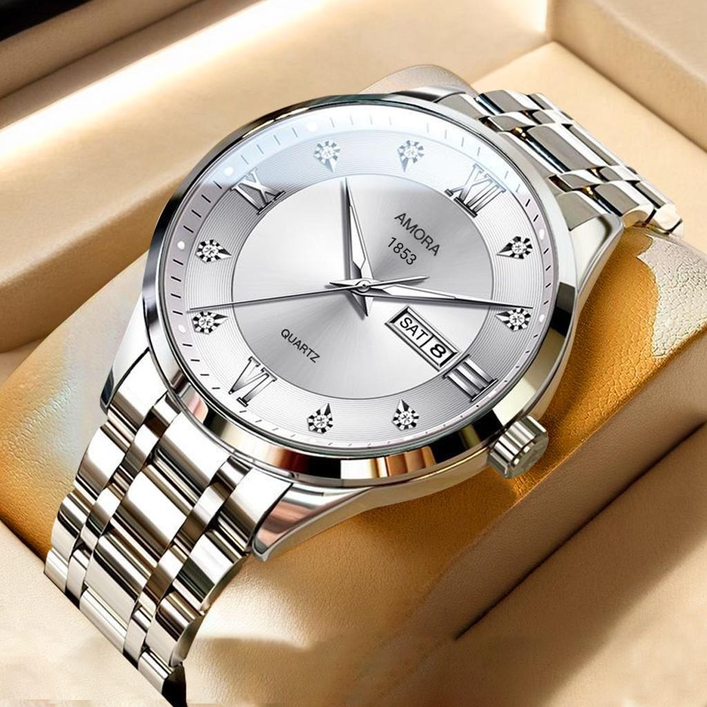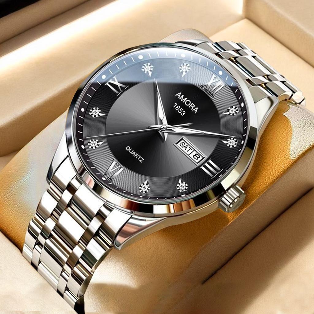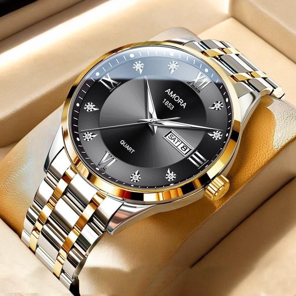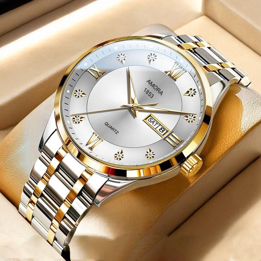 Classic Men's Watch Men's Business Quartz Men's Watch Large Dial Steel Strap Fully Automatic Non-Mechanical Watch Waterproof Gold